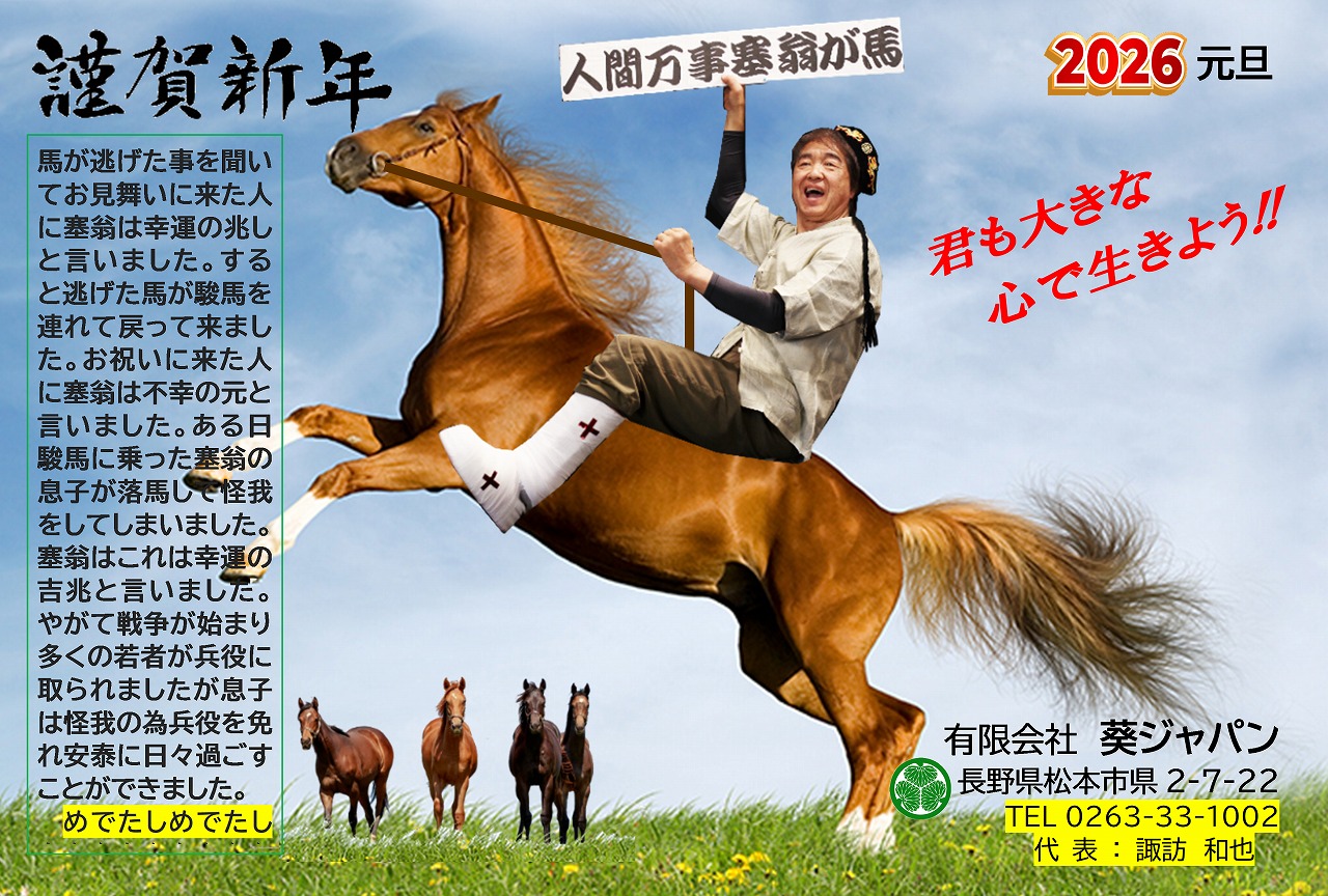 明けましておめでとうございます。災害や犯罪のないよい年になりますように!皆様のご健康とご多幸を祈願申しあげます。
